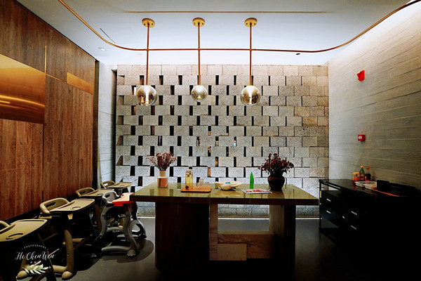 环保深入酒店的每个角落,火山石,废弃船木,铁轨枕木,铁皮等等,都是酒店的原材料。木质便签,木质房卡,红酒瓶做的水杯,大包装的洗漱用品,回收纸做的衣架,这些都是循环在利用的。