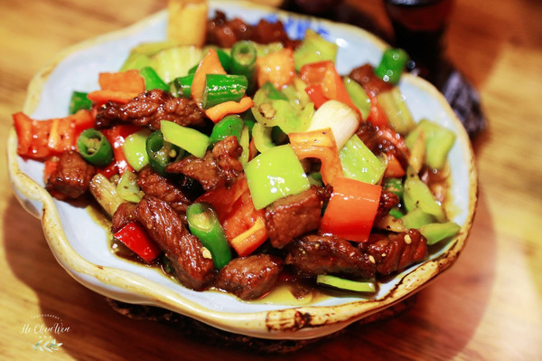 姜葱焗5A顶级雪花和牛:上等的雪花和牛,鲜美多汁,慢火熬制,肉质嫩滑,蘸着酱吃,简直是绝配。