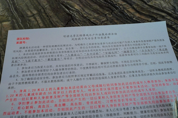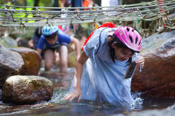 在踏瀑戏水的过程中,需要同伴之间的密切配合,利用一种团队精神,去完成艰难的攀登,它对于参与者是一种考验,同时又得到一种信心和满足,一种克服困难后的自信与成就感。