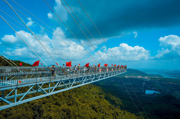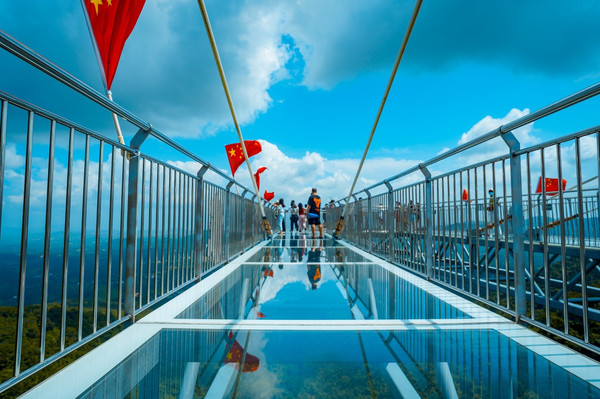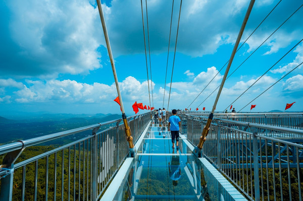 从侧面看出去,玻璃平台整个挂在空中,十分震撼。