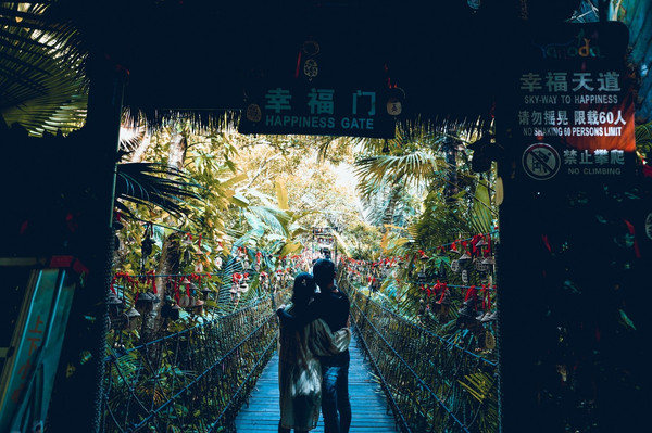 一条短短的吊桥上,挂满了祝福。
