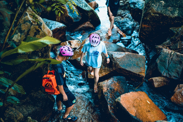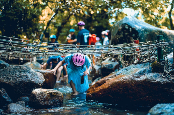 踏瀑戏水,体验感最好的项目之一,也是呀诺达景区最热门的一个体验项目。