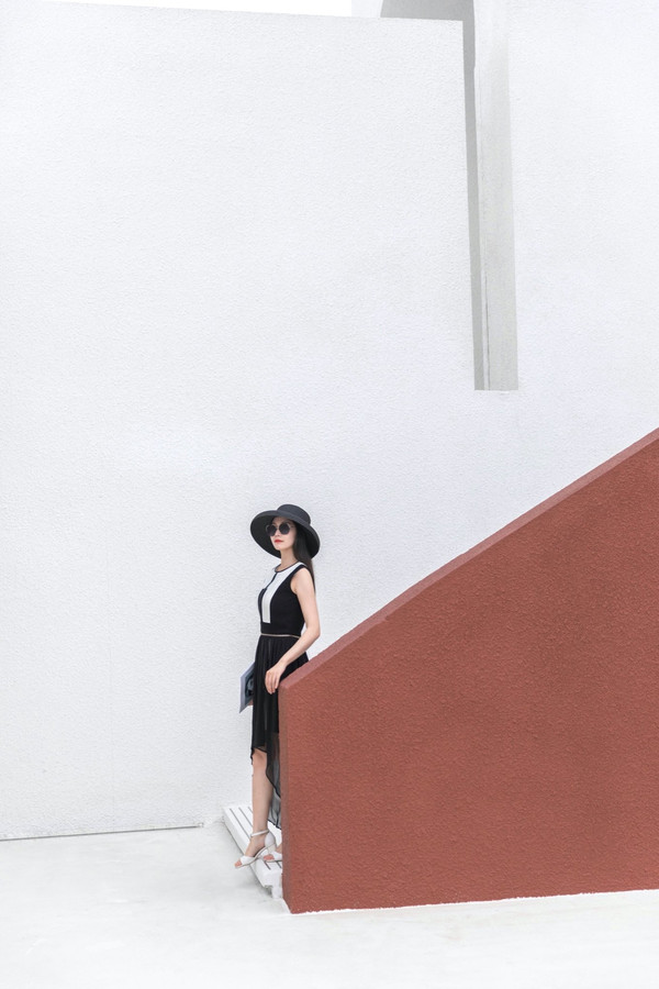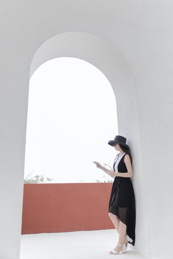 我穿的黑白色裙子,搭配了个黑色的礼帽,相机用的是佳能单反,取景角度好看的都发出来了,自己get吧!