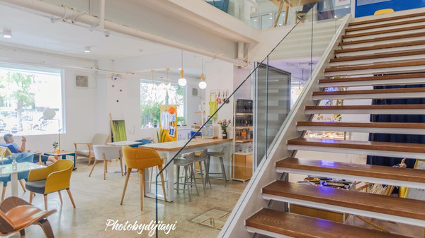 这个咖啡馆以蓝,白,黄三色为搭配色,除了卖饮品,还有工艺品,书籍,护肤品等等,可以一边喝咖啡吃点心,一边在这里消磨时光,你一定不会觉得无聊。