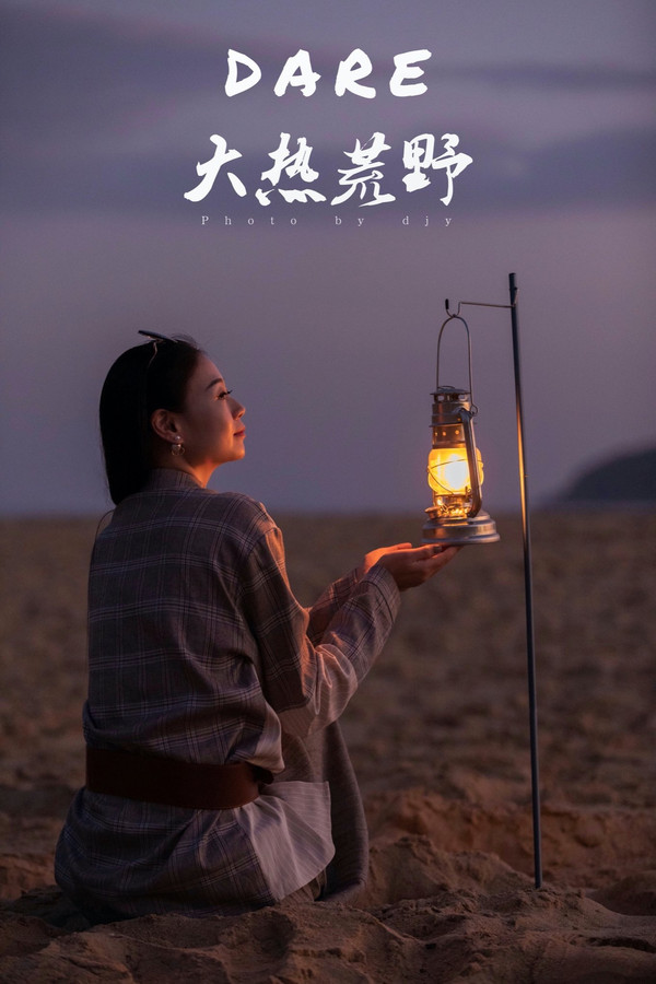 晚霞出来了,我们开始吃晚饭了。此时点上了煤油灯,坐在沙滩上拍照,超级浪漫的,有木有?