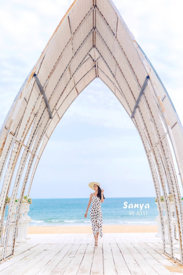 来到这里的第一感受:这不是阿那亚同款吗?也太好拍了吧!这个地方位于崖州湾科技城,是一处在售楼盘,门口有保安,走进去就能看到,真的超级出片。