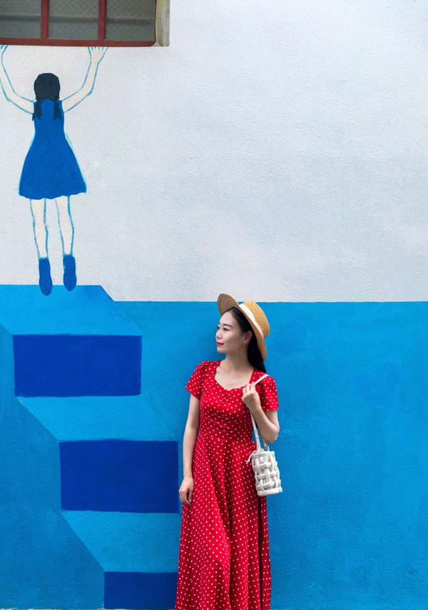 街道上有很多彩色的涂鸦,这些涂鸦都是跟海洋元素相结合的,每一面墙壁都非常好看,非常有特色。映着蓝天白云,穿行在小镇里的每一条小巷中,感觉像是走在了梦幻的蓝白世界。最惊喜的是,你永远猜不到下一个转角会遇到怎样的风景。