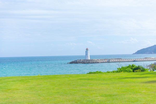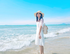 慢慢走着,就到了街道的尽头,一眼便看到了大海。清澈淡蓝的海水,冲刷着干净柔软的 白沙 ,海风轻拂,满满的惬意。