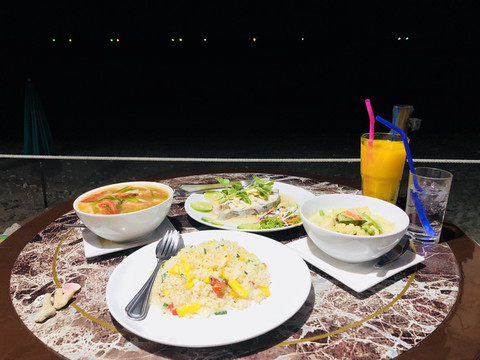 晚上预定了日落餐厅,吃的一般,但重点是日落、大海。哈哈