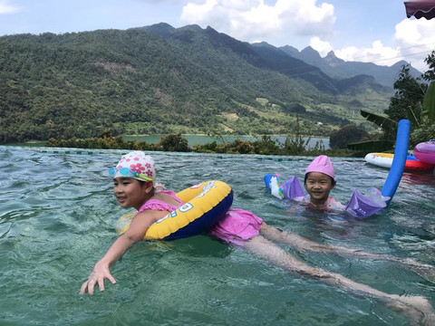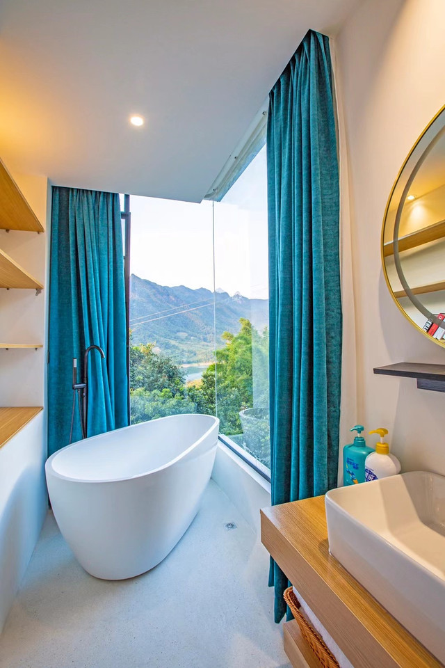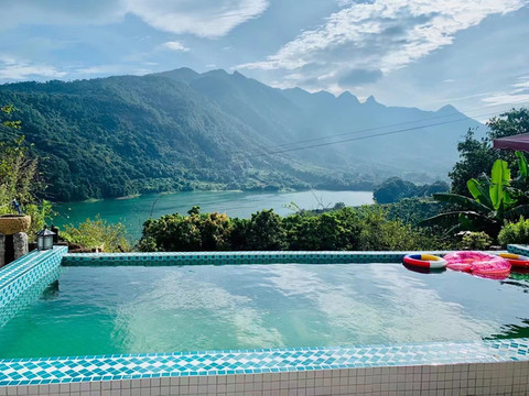 民宿在半山腰,依山傍水,都是一线湖景两栋庭院户型,房间私家院子里独享泳池,炎日可以泡个凉爽的山泉水,泳池的水是山泉水直流下来,泳池也是两三天清洗一次,天然干净!房间内还有面对风景的浴缸,在超天然的环境下在房间里可以惬意品茶,听音乐,发呆,一天就是这么惬意而放松。大落地玻璃宽敞明亮,房间视野美极了。