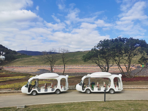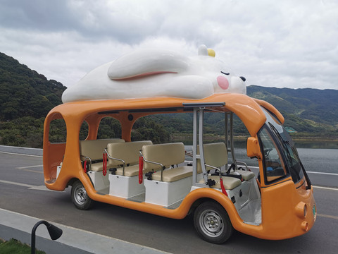 我们乘坐的观光车,车顶上的小兔子好可爱啊。