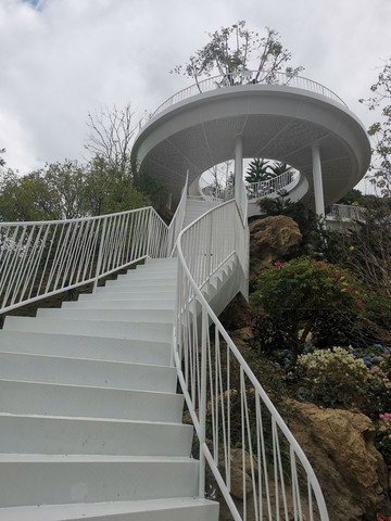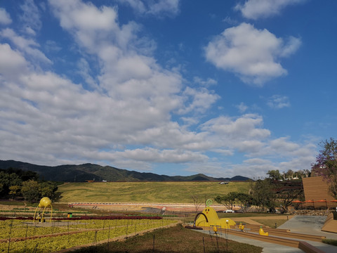 园区很大,内有免费观光车,随叫随停十分方便。我们入园时打听观光车的情况,检票处的美女立即用电话为我们安排了一辆车。我们的观光车司机姓曹,是一位十分热心和尽职的小伙子。因为车上只有我们两个游客,他就开着车带我们在园区里转了一大圈,从河边到山顶,一路上不仅为我们详细介绍每个景点的特点,还随时应我们的要求停车拍照,最后还带着我们游览了几个重点网红打卡点。有了小曹的一路介绍和陪伴,顿时感觉值回了票价。小伙子的言语中,充满了对这个景区浓浓的热爱和自豪感,我想,这应该就是一种企业文化的自信和认同感吧。