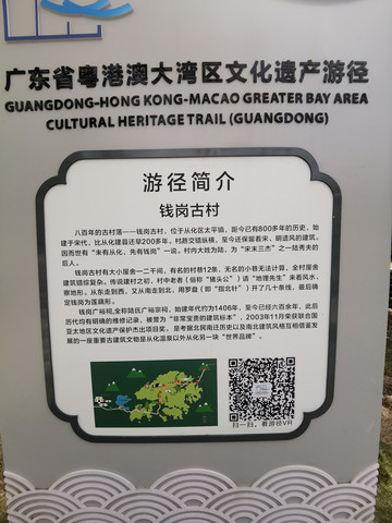 钱岗古村有四座门楼,九间书院,三座祠堂,四座更楼。村子外有—条“护村河”。古村内的巷子多又深,且迂回曲折,房舍、祠堂、棚厅、水池等一应俱全,是保存得较为完整的广府民居的典型代表。