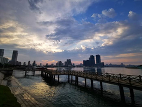 入夜渐凉,借着湖边的灯光,在湖边散散步,也非常惬意