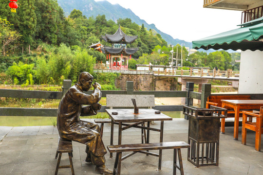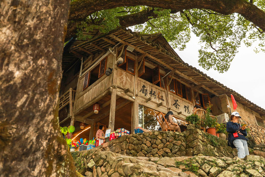 4、桥头得古树下,有一处茶馆,适合累了坐下来喝茶休息,而且还能欣赏到美丽的风景。