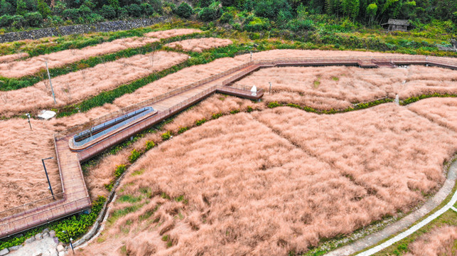 在泰泗溪镇廊桥文化园的入口处,有一片浪漫而美丽的粉黛,这团粉色像是上帝打翻的调料盘,让你少女心爆棚,软软糯糯的粉洒下了一片仙境,每年的9月到10月初,都会吸引大批游人来打卡拍照,徜徉于这些粉黛中,谁还不是小仙女?