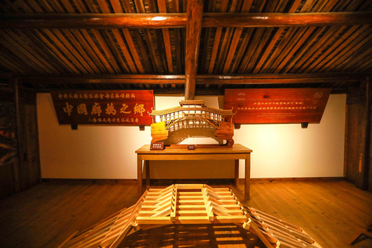 溪东桥、北涧桥所在的廊桥文化园,有一处廊桥文化展厅,走进这里像是走进一个博物馆,各种造型的廊桥模型,以溪东桥、北涧桥、仙居桥为首的典型廊桥,讲述着泰顺的历史和廊桥的构造,还可以动手体验,搭建拱架模型,感受没有一根钢钉的木质廊桥是如何搭建的。
