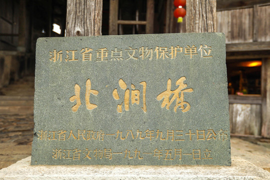 眼前这座古朴秀美的廊桥叫做北涧桥,位于泗溪镇下桥村,东南西北四条溪水在此汇合,而北涧桥恰好是在北溪上,所以叫做北涧桥。