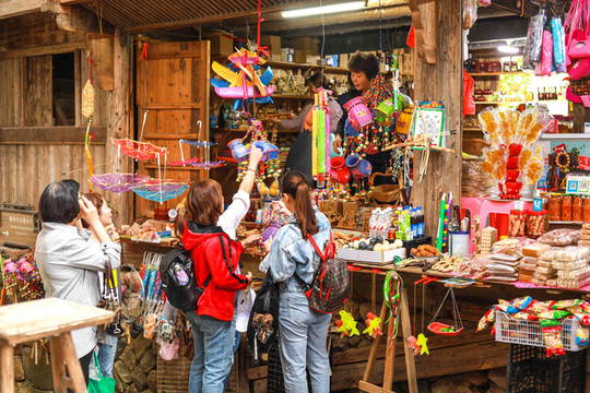 第四,廊桥也是一个商业的聚集地,进行一些贸易的往来,如今我们还能看到这里有很多当地特产,过去这边两头都是商店,还有一些餐馆。