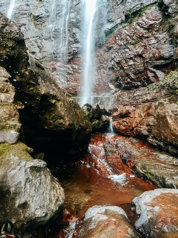 短暂的停留,看看瀑布飞流直下的壮观场景。运气好的话,还可以遇见彩虹。它由上游两条溪涧在瀑布头并行,跃下高约60米的悬崖,形成”双龙"瀑布,有人还称之为"夫妻瀑",再加上位于红岩隧道旁,"红岩双瀑"也因此而得名。