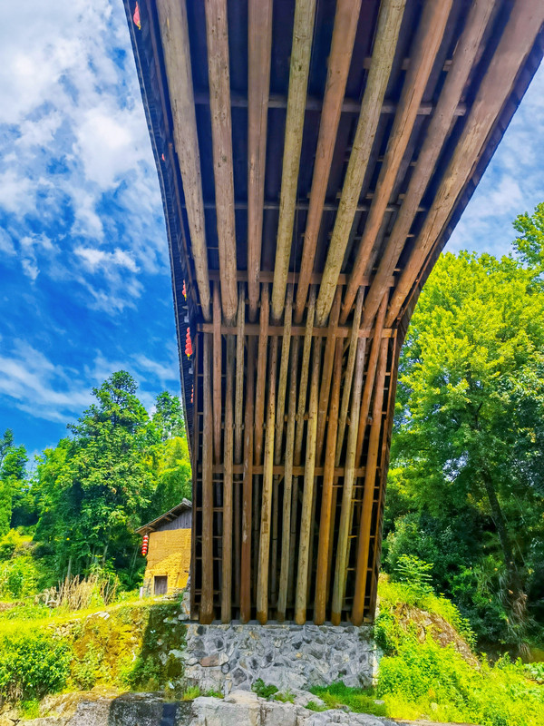 文兴桥的独特在于其不对称结构,被称为“廊桥中的比萨斜塔”。整桥呈东西之势横跨玉溪之上,长46.2米,宽5米,左低右高,极不对称。这座斜而不倒的廊桥, 历经200多年岁月风蚀,依然傲立风雨之间。