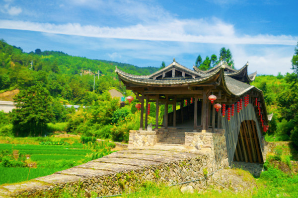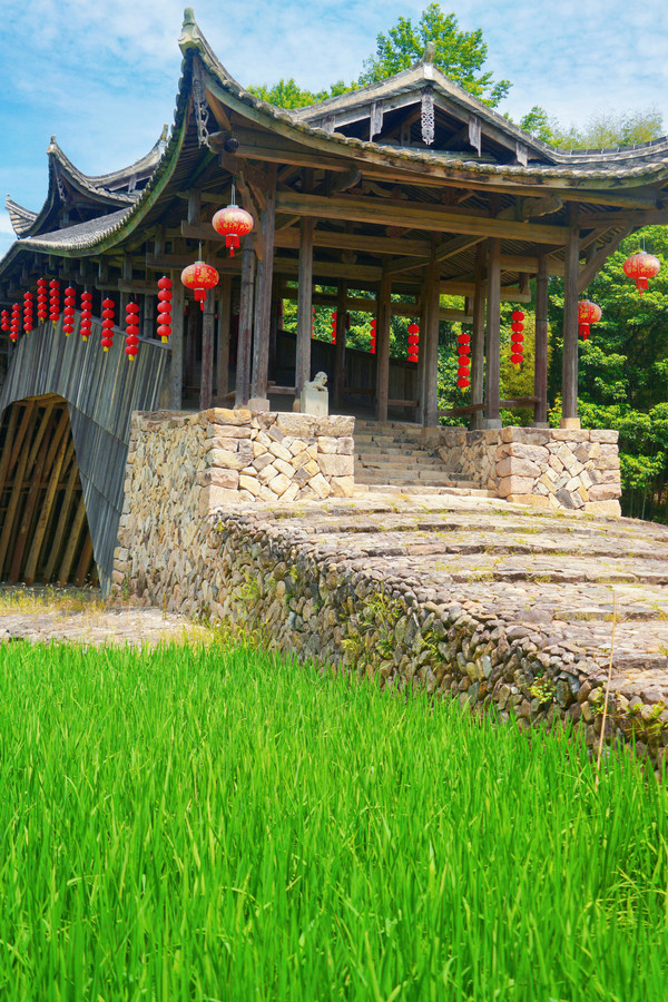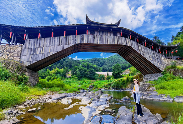 透过文重桥栏杆观望,映入眼帘的碧水、山峦、稻田、步步即景,仿佛徜徉在山水画中。虽然经历多次重建、修复,但如今重生后的文重桥少了些岁月打磨的痕迹,却彰显了另一份沉稳和生机。