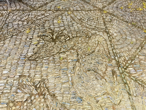 它的特别之处还在于用鹅卵石铺成的地面,不同颜色的石子勒出蝙蝠、鹿、鹤、花瓶,以及龙宫金殿、鲤鱼跃龙门等图案,令人叹为观止。