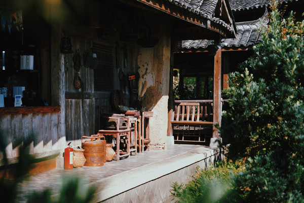 公社整体保留着畲族的民族建筑 外观是最原始夯土墙的设计,黑墙黛瓦, 墙上挂满了各种旧时农具,古朴又自然。