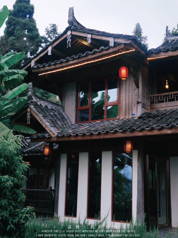筱村整体就是一个大型度假村落 有一个很大的草地院子 可以喝茶小憩,也可以仰望星空 华灯初上时,在梯田悬崖酒店的映衬下 有一种千与千寻的感觉。这里还有农场、果园,待黄桃成熟时,你也可以体验摘果的乐趣。