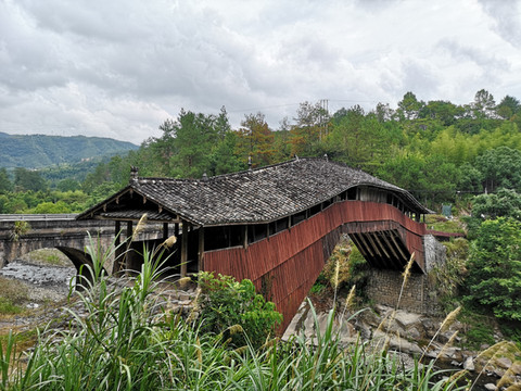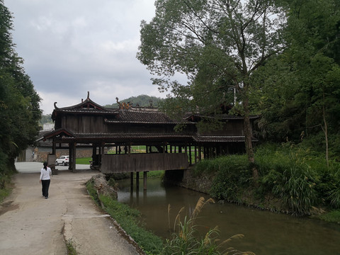 按当地人介绍又在溪水边游玩一阵后回到大路上步行回三魁镇,走到三魁汽车站附近已经很疲乏,准备能找到车的话,租车去薛宅桥和永庆桥,问一下附近的人,告诉前面茶叶店门前的那辆车会去,过去问一下往返价格,告知是30元,一想往返需要大概10几公里,还要等我们游玩,于是上车先去往远一点的永庆桥,又是一座平桥,同样在中间有一石桥墩支撑,桥一直在使用,桥上桥边均有当地人,虽不算热闹,但相比刘宅桥边已算人气颇旺了。过桥后在另一侧拍摄,虽未拍到全貌,但总体已经在镜头中,廊桥之美也完全可以体现了。回来到薛宅桥,是一座木制拱桥,周边住户很多,大人孩子往返桥两边,看来一直还是发挥着连接两岸人民生活的作用,除泗溪北涧桥外,这里是此行最热闹的廊桥,虽然没看到其他游人,但本地人往返期间,而且桥的两侧好多住户,所以薛宅桥更像大隐于市,很接地气。