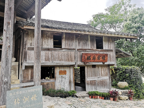 桥头的“情爱廊桥”茶吧上下两层,茶2元一杯,木屋内墙壁上挂满了不同角度、不同季节、不同人物廊桥的照片,二位美女会给你推荐目前拍照北涧桥最合适的角度,也会建议你到楼上看看,临窗观桥又是一番风景。请美女妹妹沏上二杯茶,等待茶凉的这一段时间到斜对面的廊桥文化馆,馆内展出泰顺境内不同村镇的廊桥图片和具体介绍,游人多的时候还有免费表演的皮影戏。回到茶吧,之前沏的茶水已温度适宜,清香解暑。与她俩闲聊过程中,说道想去筱村看文兴桥、文重桥和徐岙底古村落然后再回三魁镇,可是知道这里没有直接去筱村的班车,不知道哪里能找到车。她俩说在你下车的地方一会儿你去看一下,一般那里会有租车的,价格你自己可以同司机谈。后来年龄大一点的妹妹说:因为孩子在县城上学,我又不会开车,所以经常坐一个人的车回县城里,他人很实在,需不需要我帮你联系一下?然后你同他说一下行程,问问他价格,合适就让他带你俩去,不合适就再找别人。我俩连说那太好了,麻烦你联系一下他吧。她打通电话后,我俩说了一下行程,司机说需要150元,我和妻觉得价格较适宜,于是确定10分钟后在路边见。喝过茶后,美女详细的指明了等车的地点,直到看我俩走到正确的岔路才挥手道别。真的非常感谢她俩的帮助。现在想来,茶水才2元一杯,实在是太便宜,上下两层满墙的廊桥照片,感觉她俩更像宣传推介廊桥的工作人员。
