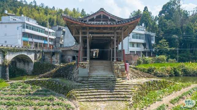 立于青山绿野之间的文重桥,在经历千百年风雨洗礼的过程中,屡建屡毁,数次更迭模样。其实一开始它并不是现在的歇山重檐小青瓦顶的伸臂木平廊桥,而是一座木拱廊桥,由当地文人林遇于明朝初年个人出资所建,因林遇字文重,故而得名“文重桥”。后又经数次重建也都是由当地读书人一人出资,直到民国前最后一次重修,修桥者林晴霁才将其建成了悬臂挑梁木结构的木平廊桥,现在我们所见到的文重桥,虽是17年修复 新建 的,但主要构件都是原桥留下的,看起来依旧是古韵犹存。