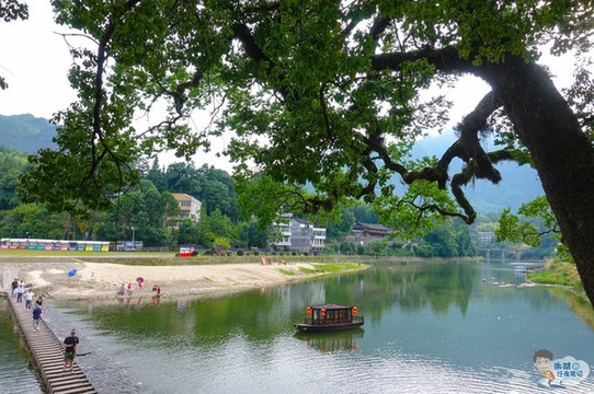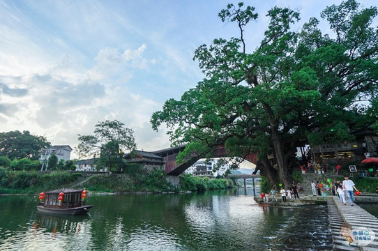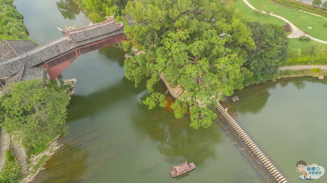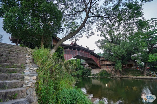 当你走近才发现斑驳的桥身、陈旧的摊位、古老的神台、以及充斥着桥身两侧的特色工艺品……每一样都透露着古朴沧桑的历史气息,与周边的古树老宅、碧水青山相得益彰,仿佛似古意盎然的山水画一般。