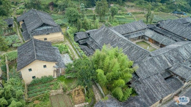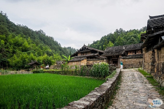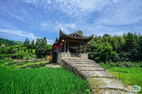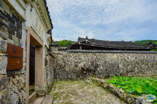错落有致的民居、纵横交织的街巷,以及幽深的庭院、斑驳的飞檐,与散落其间的农田菜畦、苍木幽篁共同构成了一幅恬静悠然的和谐画面。让人想起著名诗人罗隐笔下的“田桑茂密,人烟鸡犬,风景别致”的世外 桃源 景象。