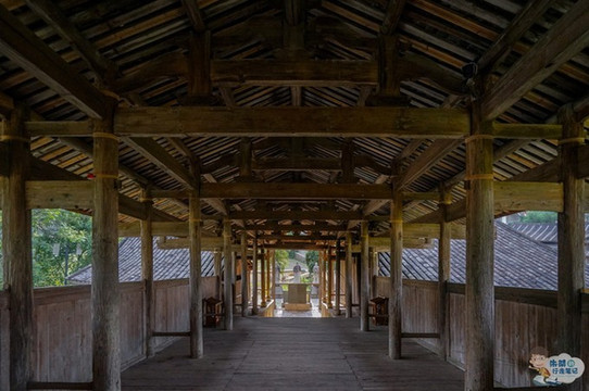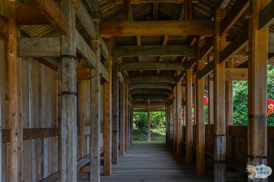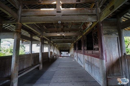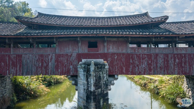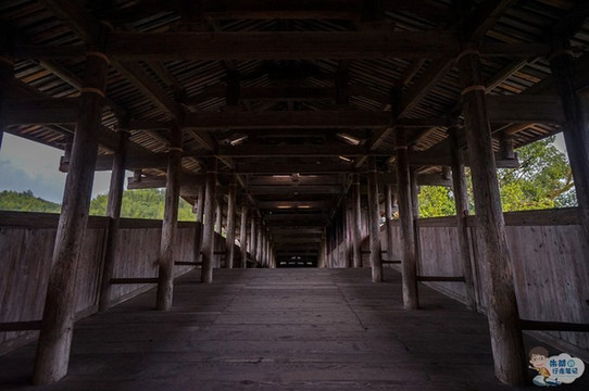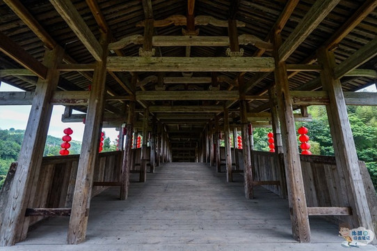 整桥呈东西之势横跨北溪之上,长51.87米,宽5.39米,净跨29米,桥面是由两层厚约一寸的木板铺就,上有桥柱84根,桥屋20间,两头有石阶若干。整座桥完全是百分百的木质结构,没有一颗铁钉和螺丝,能屹立风雨中数百年不倒,可见古人的智慧是何等的高深,技法是何其的巧妙。