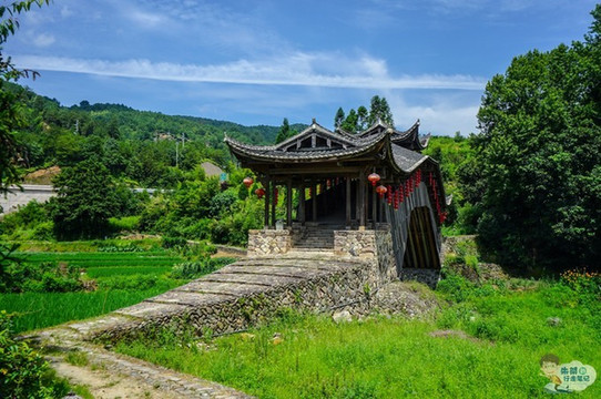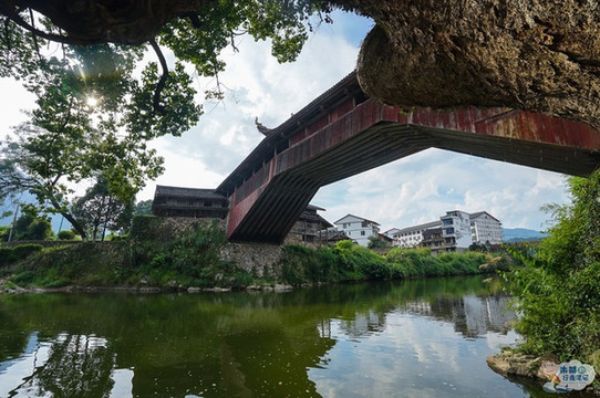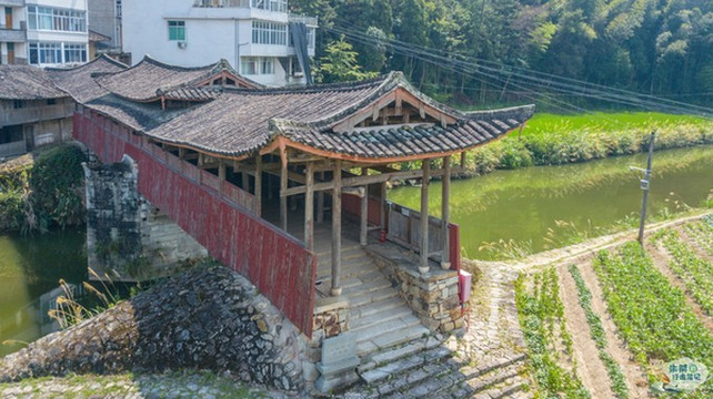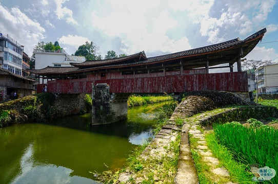 南阳 桥位于泗溪镇玉岩村,又称玉岩桥,始建于清同治九年,系一墩二孔伸臂梁木平廊桥。 南阳 桥全长41.7米,宽4.6米,呈南北走向横跨东溪,曾长期作为玉岩往来泗溪的重要交通要道,后来穿境而过的东桂线修通之后, 南阳 桥的通行功能基本已被旁边的公路桥完全替代,现在已几乎都是作为古迹景点被游客观赏了。