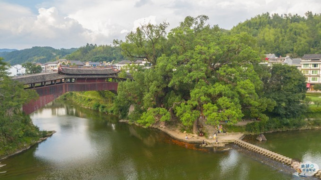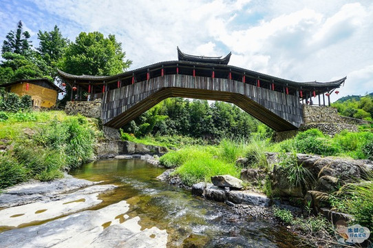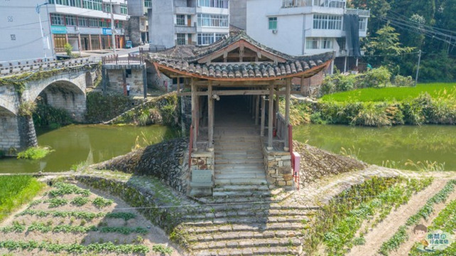 文重桥又称东洋桥,它一头连接着三条千年古道,另一头延伸至田野之间,桥下溪水湛清澄碧,四周景色仿若 桃源 ,古桥内外移步异景,美如诗画,就如它的“管理员”林晴霁所言:“板桥跨玉水,石磴过岩腰。路绕枫林外,时听叶萧萧。溪流潺潺响,互答似笙箫。闻声终日坐,顿觉静无聊。”