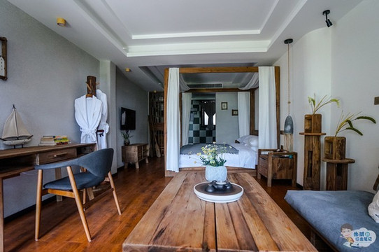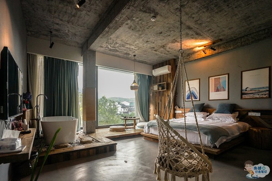 虽然民宿的外观让我们感觉很古老,但是这里的房间种类风格多样,而且装修风格也是中西合并,有日式榻榻米风、现代风、度假风等等,除此之外还有超大无边泳池、花海、采摘园、放映厅、书吧、茶社等等,在这里就可以享受久违的漫游时光。