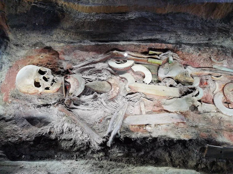 殓玉是古代专为保存尸体而制作的殓葬玉器,古人信奉“事死如事生”,相信“金玉在九窍,则死人为之不朽”,故在人死后要用玉石保存其身体。虢国墓地出土的殓葬玉器有缀玉瞑目、玉琀、玉握、脚踏玉等,初步形成了一套殓玉制度。