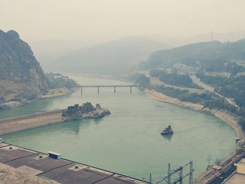 黄河三门峡谷宽不及400米,河道狭窄,峭壁对峙,惊涛裂岸,浊浪排空,终年雷声回荡。河中石岛屹立,自右而左为鬼门岛、神门岛和人门岛,三岛将黄河分为三股激流,形成“三门”,素有“三门天险”之称。其下约400米,又有中流砥柱、张公岛、梳妆台等矗立河中。20世纪30年代,著名水利专家李仪祉首先提出在黄河干流修建蓄洪水库的主张。1947年,水利专家张含应提出在三门峡建库的建议。新中国成立后,在苏联专家的帮助下,几经查勘论证,最终选定在三门峡建库,1957年4月13日,三门峡水利枢纽工程开始建设,1960年实现拦洪,1961年4月大坝主体工程基本竣工,1962年2月第一台150兆瓦机组投入运行。