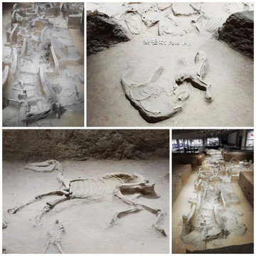 由于博物馆就建在墓葬遗址上,这里还可以参观车马坑原址。