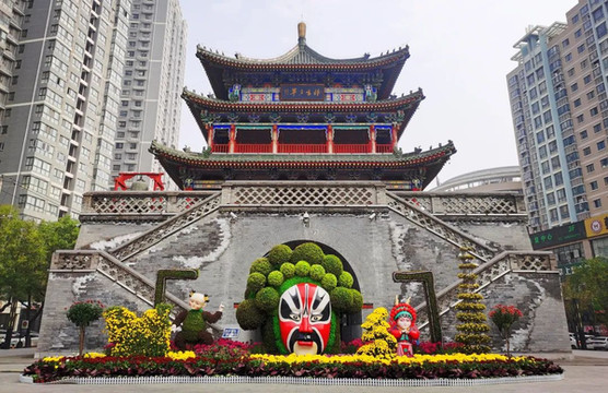 博物院向西步行五百米到达钟楼广场,广场上屹立的钟楼也是一座始建于明代的建筑,历代均有修葺,如今是咸阳的地标建筑之一。