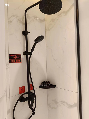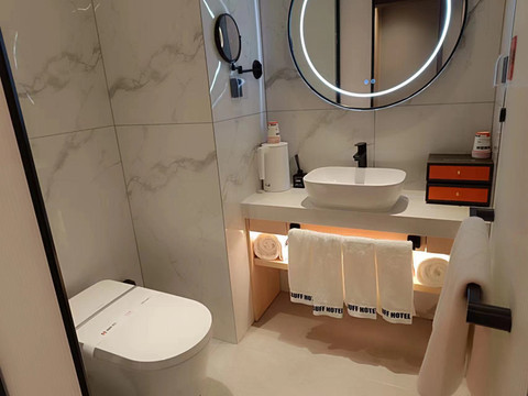 卫生间有智能马桶,化妆镜,但是对我们几个糙老爷们没啥大用。淋浴房有顶喷,水压很大,是我这几天在淮南洗澡最舒服的一次。