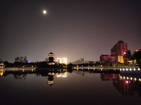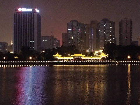 晚上闲逛迎泽公园(免费),公园是太原市内大型休闲公园,迎泽湖风景秀丽,夜晚的迎泽公园流光溢彩,令人留连。