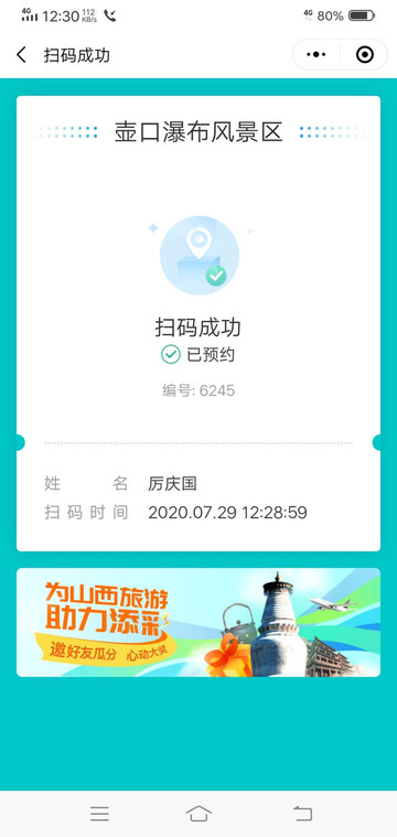 疫情期间,进入山西省需要生成当地健康码,我的健康码(见下图),伴我畅游整个山西的旅行,非常方便,前提是你必须身体健康。