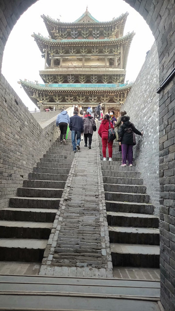 民宿老板是居民,但是小车也不能进古城,我们在北门进去,需要出示在平遥古城的微信公众号提前预约的二维码和健康码才能进去。恰巧遇上古城东北角改造,本来已经很干的古城里各种层土飞扬,民宿正好也在东北片区