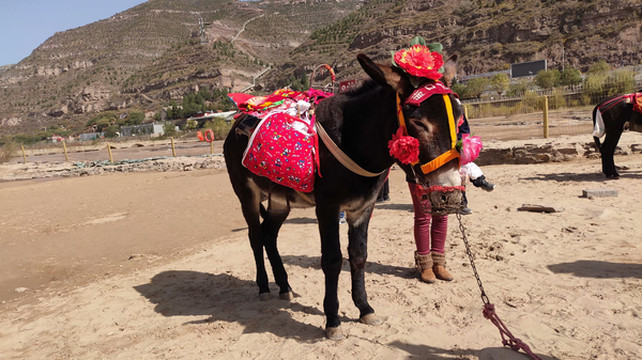 很多人会在桥边逗留拍拍这里湍急的水流,过了桥有好多这种拖着驴招揽游客收费拍照的,驴都背着准备好的道具,还是我不喜欢的大红花,还要穿在身上拍照,不适合我,看看驴就好了。