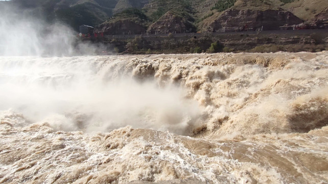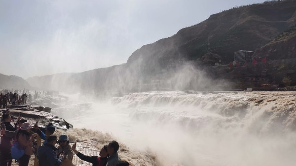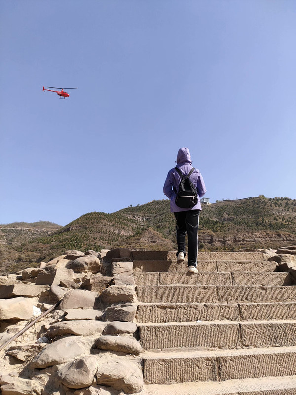 继去年晕黄山后又一力作,晕壶口瀑布。转移一下注意力吧,拍点凹造型吧,可是这里好像除了瀑布外都没什么好的背景了,还好这架一直在景区上空盘旋的直升飞机刚好入镜了