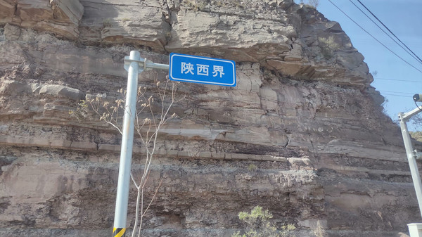 司机也是靠导航去的呢,还错过了高速出口,结果把我们带到了陕西那边放我们下车,还好不是把我们带到陕西那边的壶口瀑布(壶口瀑布有陕西景点,陕西宜川那边是侧面从下往上看感受黄河之水天上来,而山西吉县这边呢是正面由上往下看感受千里黄河一壶收),车不能过的桥,我们走路跨过黄河回山西这边。这是在桥上拍到的陕西界牌: