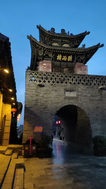 沿着城墙逛到南门,可惜过了6点半,已经不能上城墙了,然后沿着南大街(好像也叫明清古街,这里很多饭馆)走回古城中央